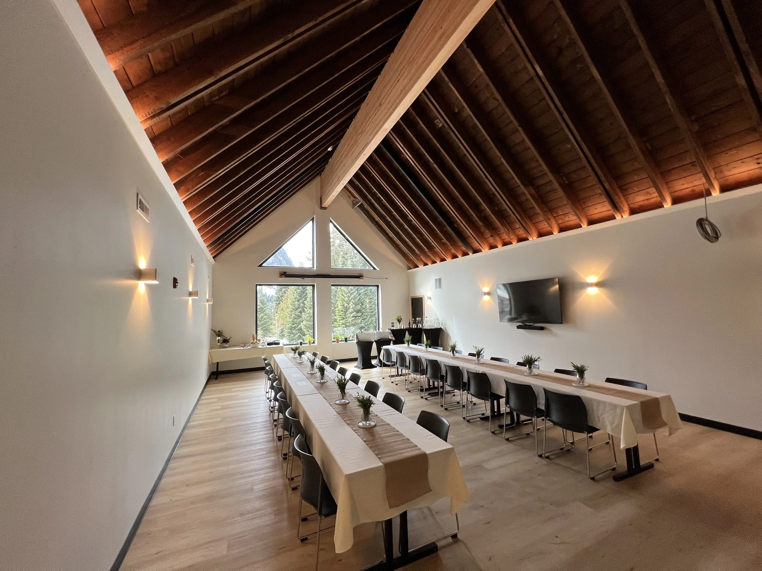 Located just 45 minutes from Seattle, The Cathedral Room at Pass Life Workspace provides an intimate and unique experience for you and your guests. Nestled in the center of Snoqualmie Pass, The Cathedral Room offers a unique setting, sweeping mountain views, and easy access to year round outdoor recreation, local catering, lodging, activities, and more.